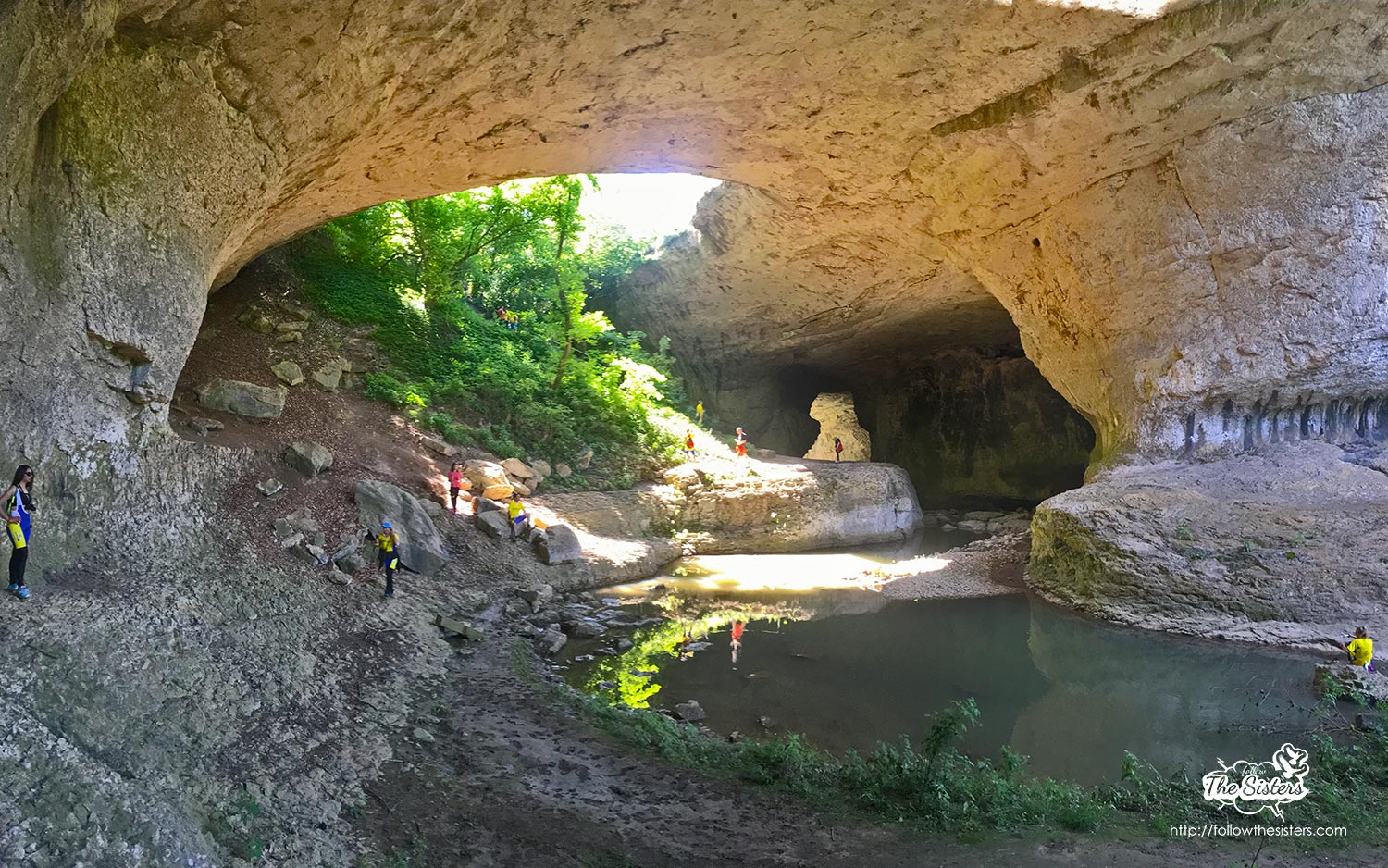 Групата миньони, от която бяхме част и ние (облечени в униформите на Interreg в жълто и синьо) бързо налази пещерата и по нова традиция всеки се опитваше да си щракне най-хубавата снимка. Докато Ели и аз кротичко се наслаждавахме на красотата над нас една от девойките реши да си играе на прескочи-кобила с големите камъни. Е, загуби и цопна във водата, но пък да е жива и здрава – развесели всички ни.