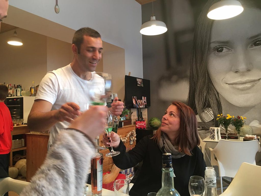 Но стига с разсъжденията ми. Това, което описвам е малко (по размер, не и по усещането което оставя) място, собственост на млад мъж на име Елен. Влязохме вътре изкушени от мисълта за топла супа и студена бира. С прекрачването на прага на това малко ресторантче/магазинче погледа ни бе прикован от етикетите на няколко италиански марки бира (700 мл бутилката). В следващия момент и деветимата бяхме седнали на една от масите и оставяхме изцяло избора в грижливите ръце на Елен. Не бяхме гладни. Ама изобщо! Въпреки това, не устояхме на примамливата му оферта и не след дълго вече унищожавахмв две огромни (безумно вкусни) салати, доста от домашно изпечения му хляб с квас, прясно биволско сирене, доволно количество скара и много бира. Трябва да наблегна на това че: