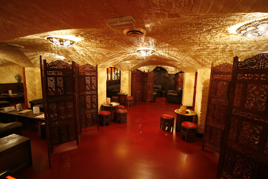 Мястото всъщност беше приятно тъмно, точно като за клуб, с кожени сепарета (за мое учудване разделени едно от друго с паравани), с няколко зали свързани помежду си от красиви каменни арки и съответно няколко бара. Преобладаващия червеникаво-кафяв цвят придаваше на атмосферата лек домашен уют, а шоколадовото фондю, което разтапяше млечно-какаовото изкушение на няколко метра от бара изпълваше въздуха със сладък аромат. Позволих си да си помисля, че на следващия ден ще бъде приятно да се чукнем с по чаша шампанско там и че решението да работим на връх Нова Година в крайна сметка е наистина добро. Единственото, което не можех да си обясня бяха странните метални конструкции, разположени хаотично из заведението, но отговора не закъсня.