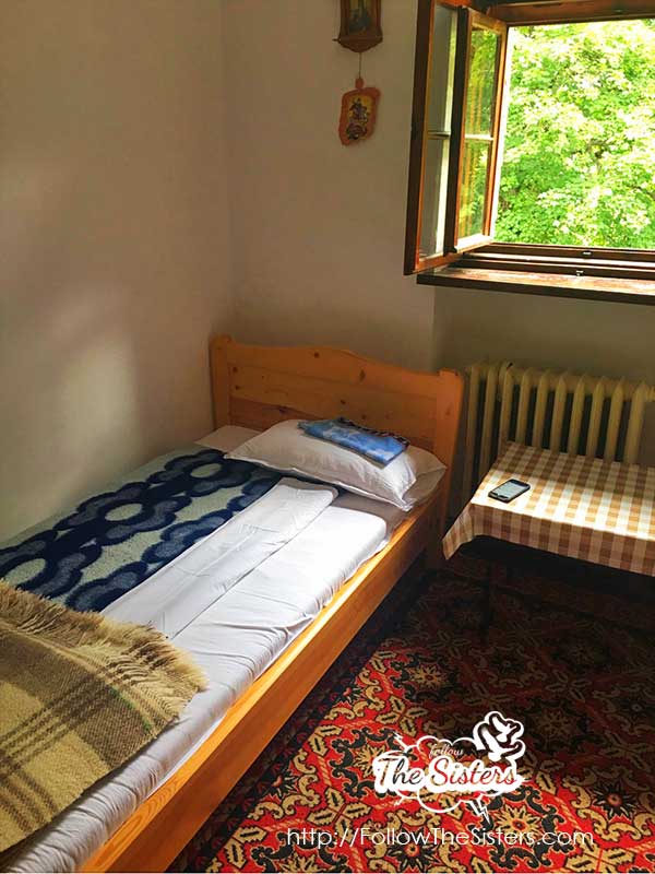 За 20 лева на човек получихме ключовете от монашеската ни килия, която се оказа много повече, отколкото очаквах. Просторна стая с 3 единични легла, голям гардероб, няколко масички и собствена баня. В съзнанието ми това бяха луксове (особено банята), които не принадлежат в монашеска обител, но докато миех зъбите си на сутринта не можех да съм по-благодарна, че не трябва да използвам споделен санитарен възел.