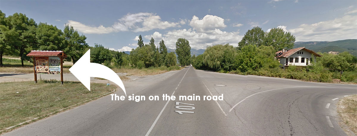 За да стигнете до Стобските пирамиди, трябва да минете през село Стоб, което е достатъчно лесно дори и без да използвате навигация. По целия път от София до там трябва да следвате табелите за Рилски манастир и след около час и малко каране да внимавате да не изпуснете табелата към селото. Ето как изглежда тя на главния път: