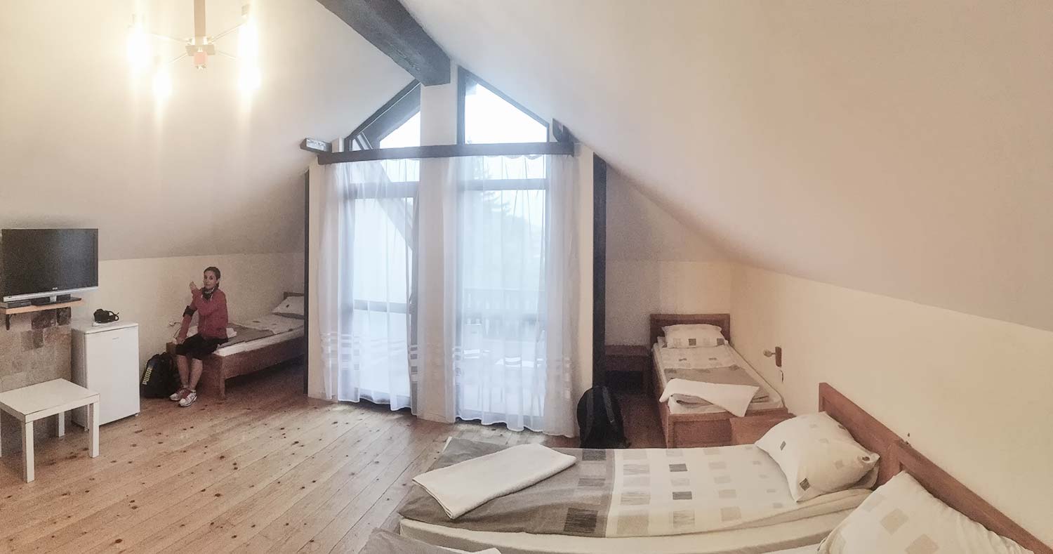 Продължаваме към къща за гости Зелениград, която се оказва прелестна! Тучна зелена градина с приказна гледка към Шили Камик, омайния аромат на дървена къща и всички съвременни удобства, нужни за една пълноценна почивка.